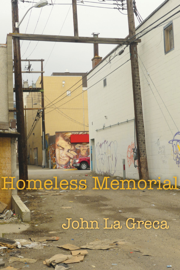 John La Greca is Canada’s Charles Bukowski, writing with deep and at times blistering honesty and humour of a side of Okanagan culture never seen in tourist brochures. For nearly fifty years, he has been our greatest poet of the streets. For all this time, he has lived with a mind given many diagnoses, including schizophrenia and obsessive compulsive disorder. He has been in and out of care since 1967, surviving on inadequate government and community support, drawn by poverty, curiosity and community into close relationships with homeless and disenfranchised people on the margins of society. Out of these circumstances, he has grown in strength, compassion and stature. As the streets where he spends his days and much of his nights have become increasingly the realm of a drug culture, he has struggled against an increasing sense of alienation from home. Homeless Memorial is John’s remarkable record of a city he knows better than anyone else, which he places within the context of his extensive readings of history and world society.